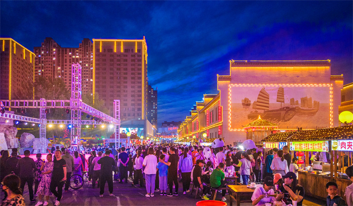 福街民族夜市。以“古街新潮”的人文理念為特色,激發(fā)城市活力,主要包括餐飲區(qū)、后備箱市集、地攤區(qū)、兒童娛樂區(qū)、景觀互動區(qū)、舞臺演藝區(qū),除了餐飲、購物、燈光秀、兒童游樂設(shè)施等,設(shè)計以場景為特色的歲月街區(qū),以及線上流行元素為特色的網(wǎng)紅街區(qū),更增加了高品質(zhì)的的文化、體育、競技、表演等產(chǎn)品,充分挖掘本地文化旅游資源,已成為盤錦地區(qū)較具影響力的地標(biāo)文化夜市,讓游客在百年福街體會具有文化氣息的吃喝玩樂購。
