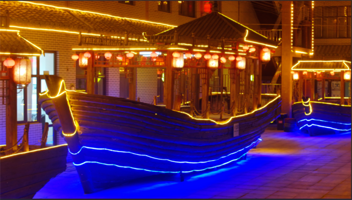 “福船”:位于福街興隆巷南門,是積淀了盤錦百年漁雁文化的二界溝古老排船,距今己有187年傳承史,有“北海福船”之稱。寓意福氣滿滿、滿載而歸。